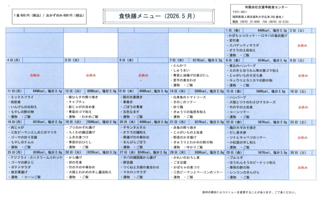 5月食快膳弁当メニュー